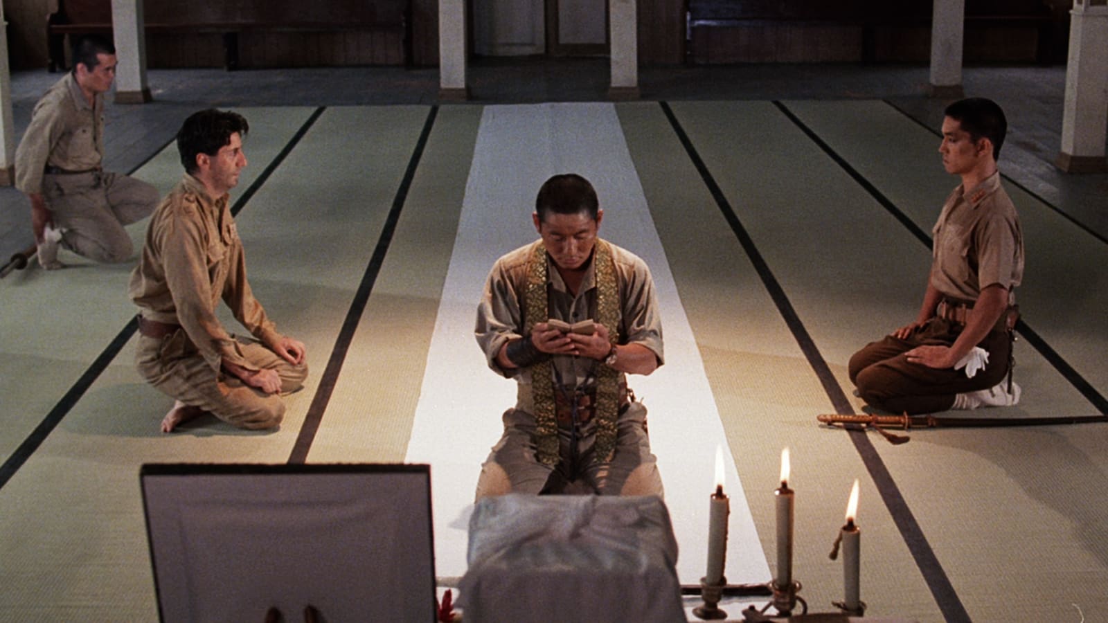 Japanin 1960-luvun uuden aallon keskeinen ohjaaja Nagisa Oshima toteutti Tyynenmeren sodan aikaan sijoittuvan elokuvansa 1980-luvun alussa brittituottaja Jeremy Thomasin avustuksella. Sir Laurens van der Postin romaaniin perustuva elokuva sijoittuu Jaavalle, Japanin armeijan ylläpitämälle sotavankileirille. Siellä toisensa kohtaavat ja toisensa näkevät brittiarmeijan kunniaa ylläpitävä majuri Celliers ja Japanin keisarillisen armeijan kuria kovin ottein ylläpitävä kapteeni Yonoi. Rooleihin pestattiin muusikot David Bowie and Ryuchi Sakamoto, joista jälkimmäinen sävelsi myös elokuvan hienon musiikin. Sen kaunis pianoteema on jäänyt elämään. Vahvoja homoseksuaalisia teemoja ilmentävä suhde menee  yli vihollisrajojen. Niitä yrittää ylittää myös luutnantti Lawrence (Tom Conti). Elokuva esitteli myös ensimmäistä kertaa länsiyleisölle Japanissa suositun TV-koomikon Beat Takeshin elokuvan nimirepliikin lopussa lausahtavana kersantti Harana. Hän tuli myöhemmin meilläkin tunnetuksi elokuvaohjaajana oikealla nimellään Takeshi Kitano.  – Eija Niskanen